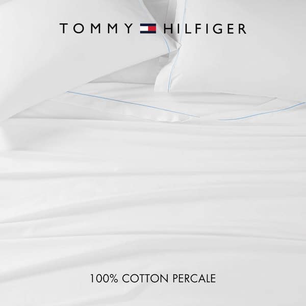 Solid 4-Piece White/Boathouse Blue Cotton Full Sheet Set