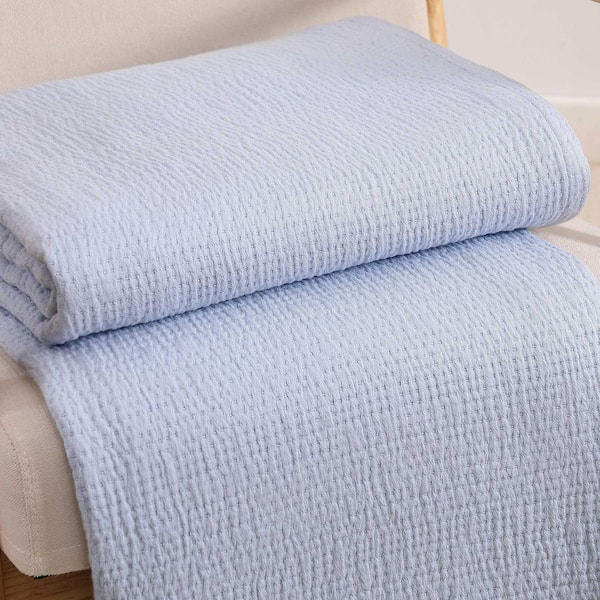 TH Solid Mist Blue Cotton Full/Queen Blanket
