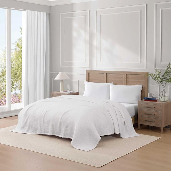 TH Solid White Cotton King Blanket