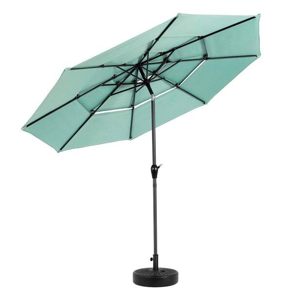 10 ft. Steel 3-Tier Outdoor Market Patio Umbrella Tilt and Crank Ventilate Umbrella Without Base in Light Green