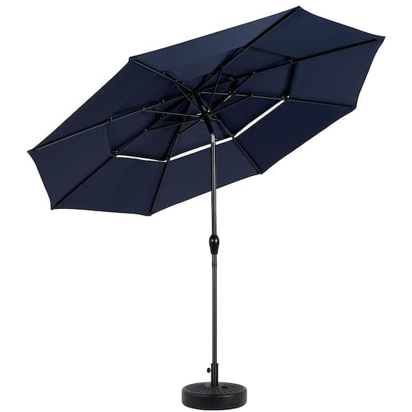 10 ft. Steel 3-Tier Outdoor Market Patio Umbrella Tilt and Crank Ventilate Umbrella Without Base in Navy Blue
