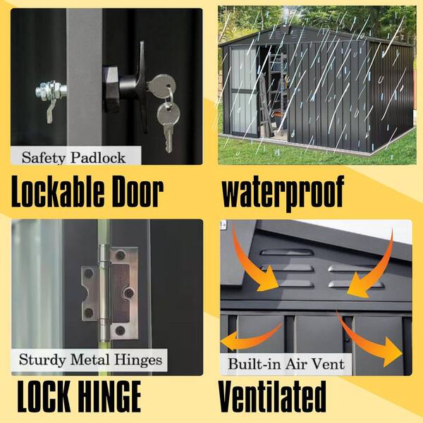 10 ft. W x 8 ft. D Outdoor Metal Storage Shed Tool Cabinet with Lockable Double Door for Backyard, Black (80 sq. ft.)