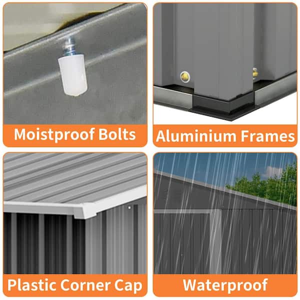 10 ft. W x 8 ft. D Outdoor Metal Storage Shed with Lockable Doors for Garden, Patio, Backyard, Lawn, Grey (73 sq. ft.)