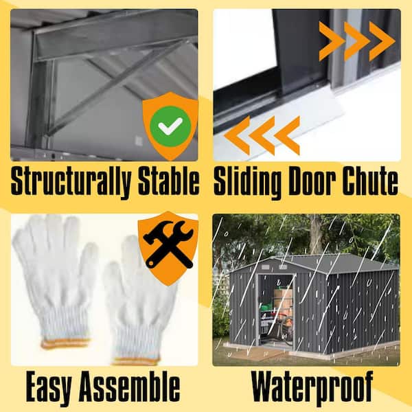10 ft. W x 8 ft. D Outdoor Shed, Metal Storage Sheds with Foundation and Lockable Doors, Grey (80 Sq. Ft.)