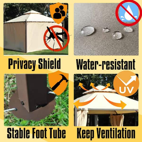 10 ft. x 10 ft. Steel Outdoor Patio Gazebo with Polyester Privacy Curtains, 2-Tier Roof for Air and Large Design