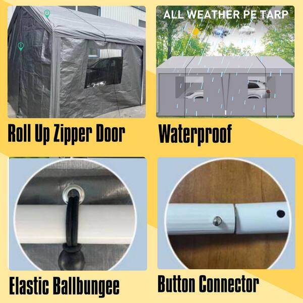 10 ft. x 20 ft. Heavy-Duty Garage Portable Carport Tent for Outdoor Storage Shelter, Grey