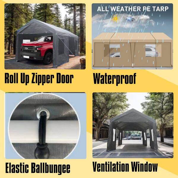 12 ft. x 20 ft. Heavy Duty Outdoor Car Canopy Carport Portable Garage Sand