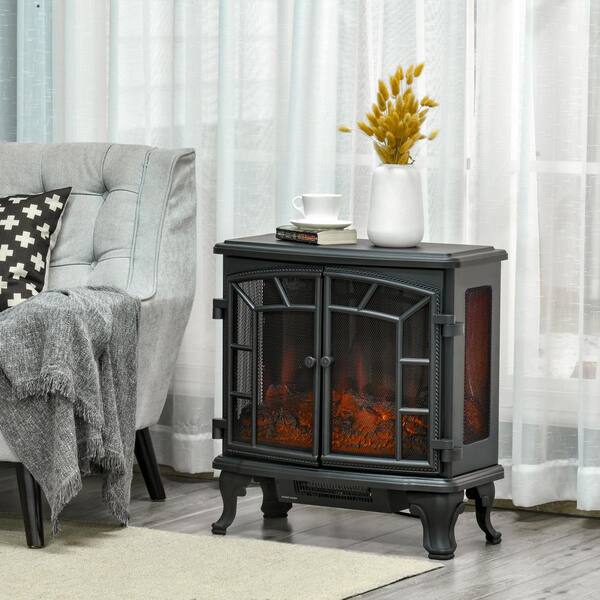 25 in. Freestanding Electric Fireplace Stove in Black, Realistic LED Flames, Remote Control and Overheating Protection