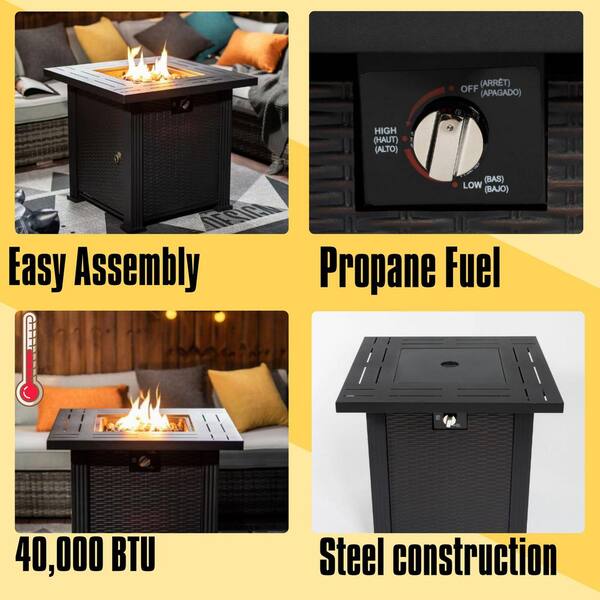 28 in. 40,000-BTU Square Steel Outdoor Patio Fire Pit Table with Rocks in Brown Black
