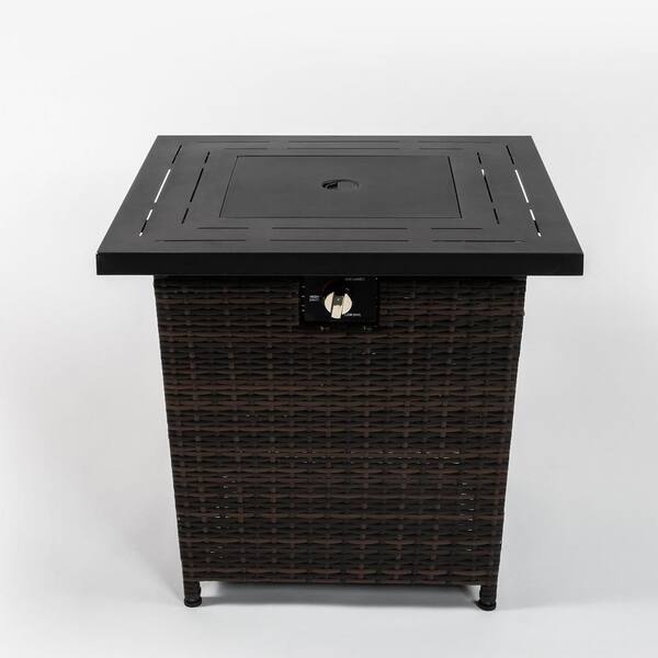 28 in. 40,000-BTU Square Wicker Outdoor Patio Fire Pit Table in Black Brown