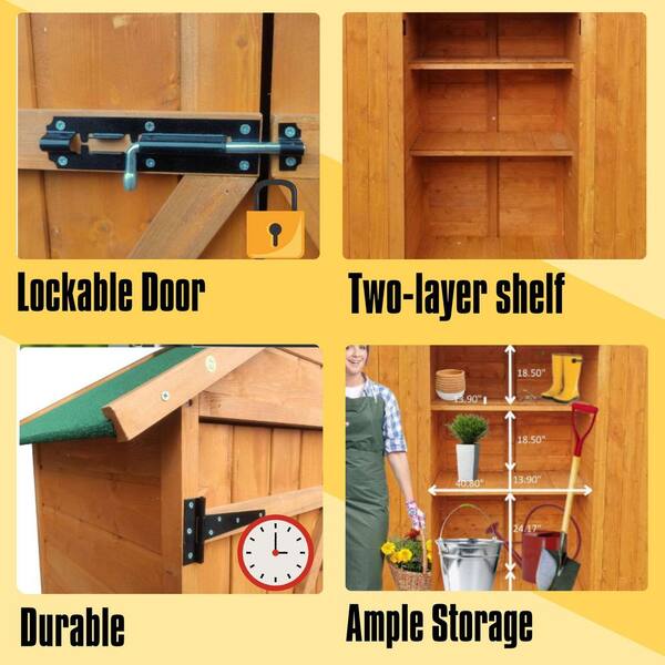 3.4 ft. W x 1.9 ft. D Wood Shed Big Spire Tool Storage with 2 Shelves for Backyard Garden, Natural Color (6.46 sq.ft.)