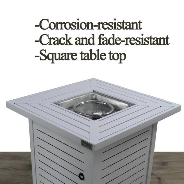 30 in. 40000 BTU Steel Outdoor Propane Natural Gas Fire Pit Table with Lid for Deck Patio, White Line