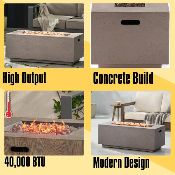 40 in. 40,000-BTU Rectangular MGO Outdoor Patio Fire Pit Table in Light Grey