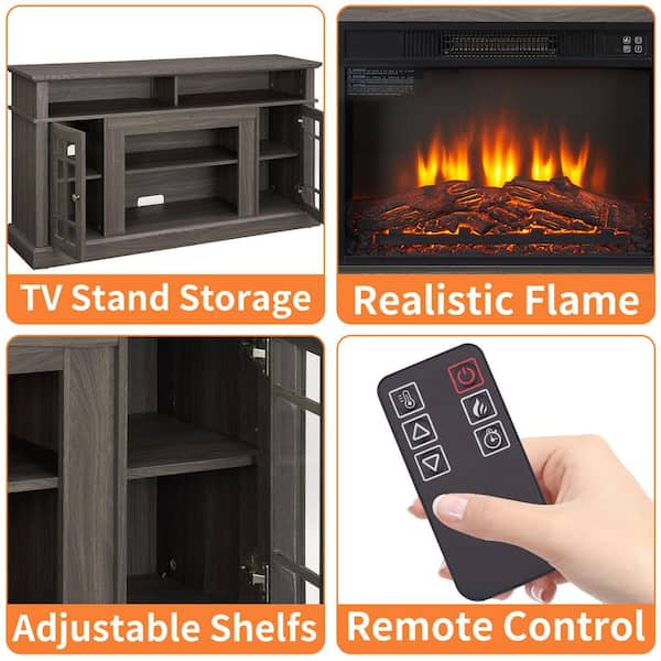 58.25 in. Freestanding Electric Fireplace TV Stand with 23 in. Electric Fireplace Insert, Storage Space, Dark Walnut