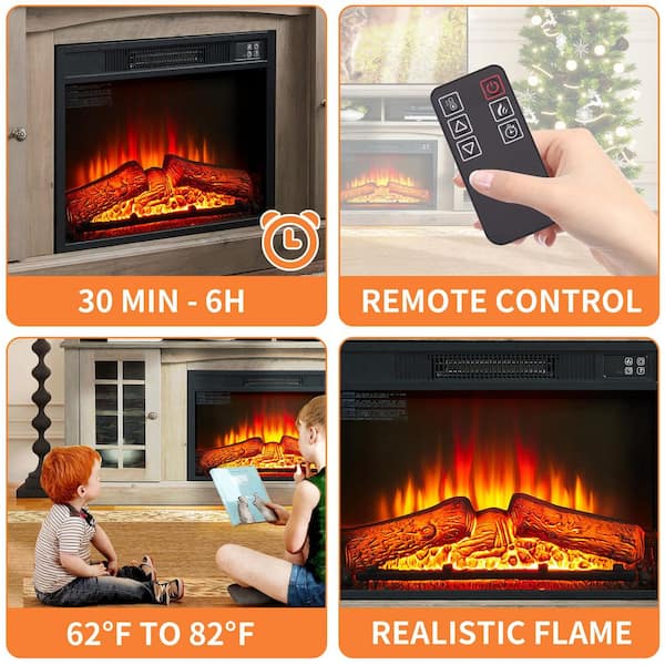 • Remote Flames,3 Flame Levels,Adjustable Heat 62°–82°F with Timer