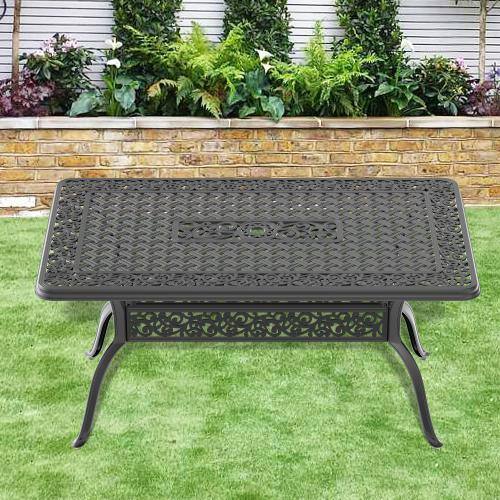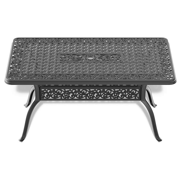 59.05 in. Cast Aluminum Rectangle Patio Outdoor Dining Table with Black Frame and Umbrella Hole