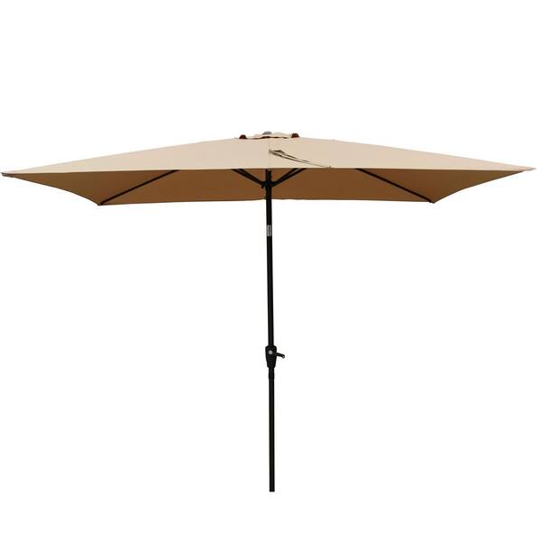 6 ft. x 9 ft. Patio Market Umbrella Outdoor Waterproof Umbrella with Crank and Push Button Tilt in Brown