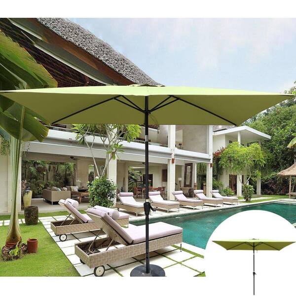 6 ft. x 9 ft. Patio Market Umbrella Outdoor Waterproof Umbrella with Crank and Push Button Tilt in Lime Green