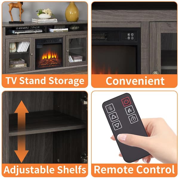 60 in. Freestanding Electric Fireplace TV Stand with 18 in. Fireplace Insert for TV Up to 65 in. Dark Walnut