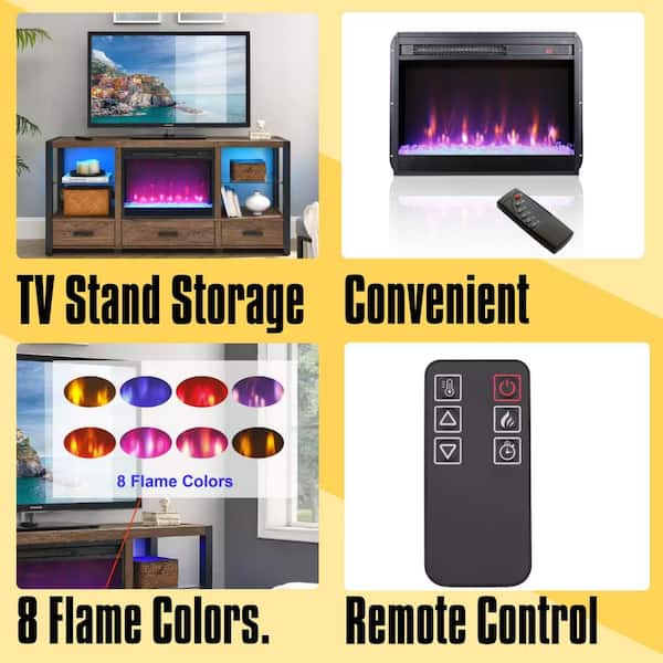 60 in. Freestanding Wooden Electric Fireplace Media TV Stand with Colorful LED Lights in Reclaimed Barnwood