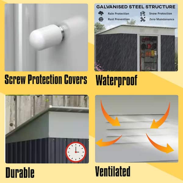 7 ft. x 3.6 ft. Outdoor Storage Metal Shed, Garden Tool House with Double Sliding Doors, 2-Air Vents, Gray (22 sq. ft.)