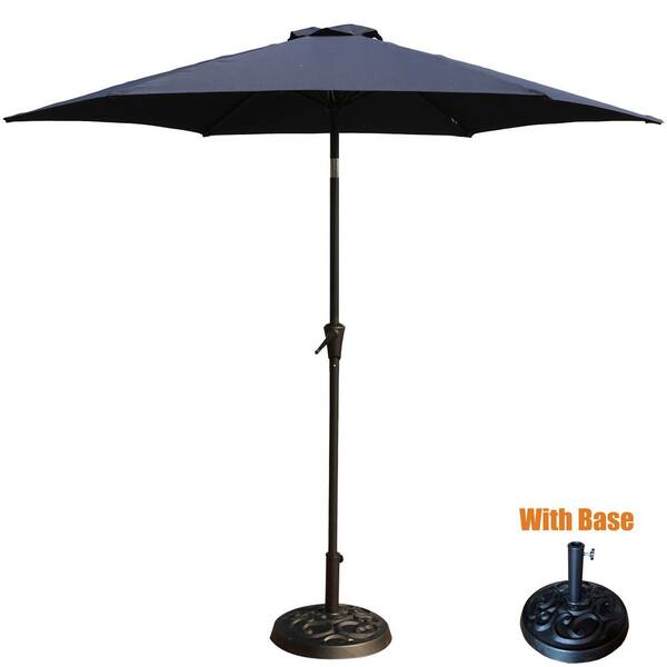 8.8 ft. Aluminum Outdoor Patio Umbrella with 33 lbs. Round Resin Umbrella Base, with Hand Crank Lift in Navy Blue