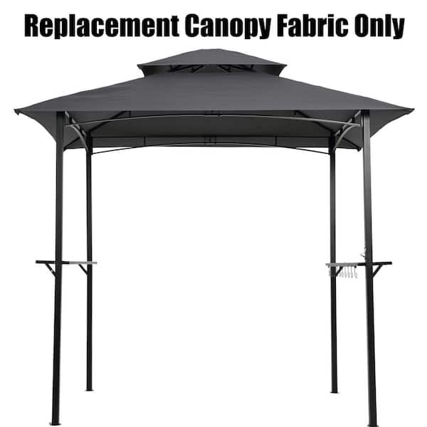 8 ft. x 5 ft. Gray Grill Gazebo Replacement Canopy, Double Tiered BBQ Tent Roof Top Cover