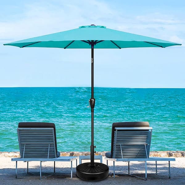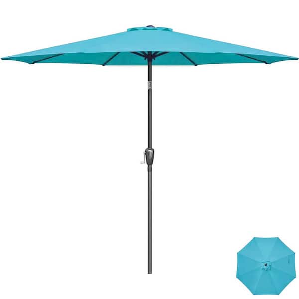 9 ft. Aluminum Outdoor Market Table Patio Umbrella with Hand Crank Lift in Turquoise