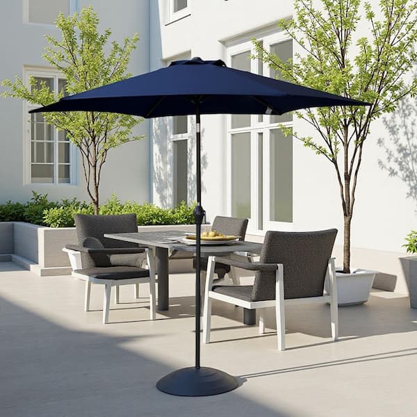 9 ft. Patio Market Umbrella Outdoor Waterproof Umbrella with Crank and Push Button Tilt in Navy Blue