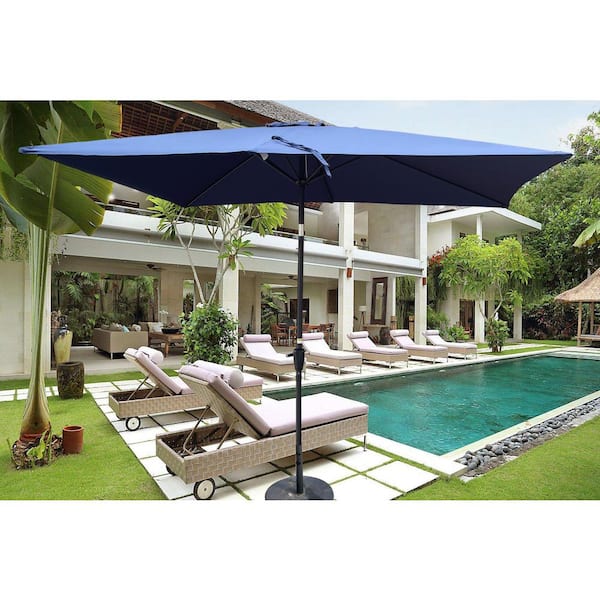 9 ft. x 6 ft. Rectangular Aluminum Market Push Button Tilt with Crank Patio Umbrella in Navy Blue