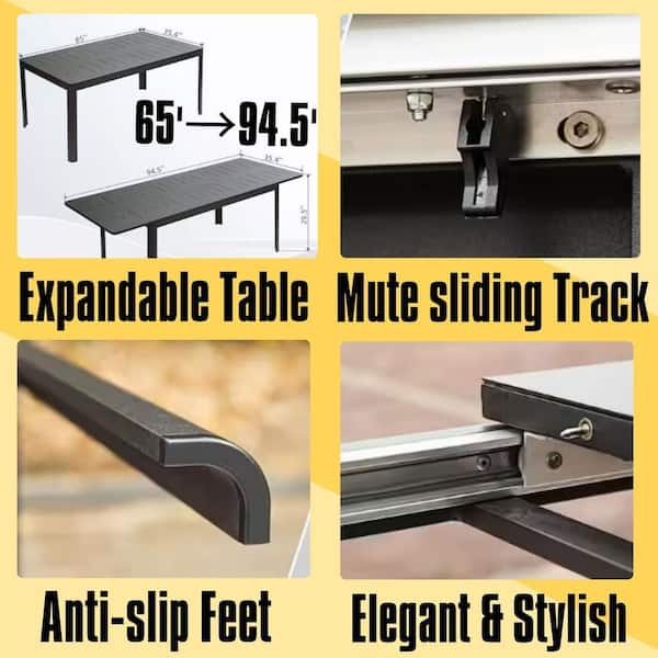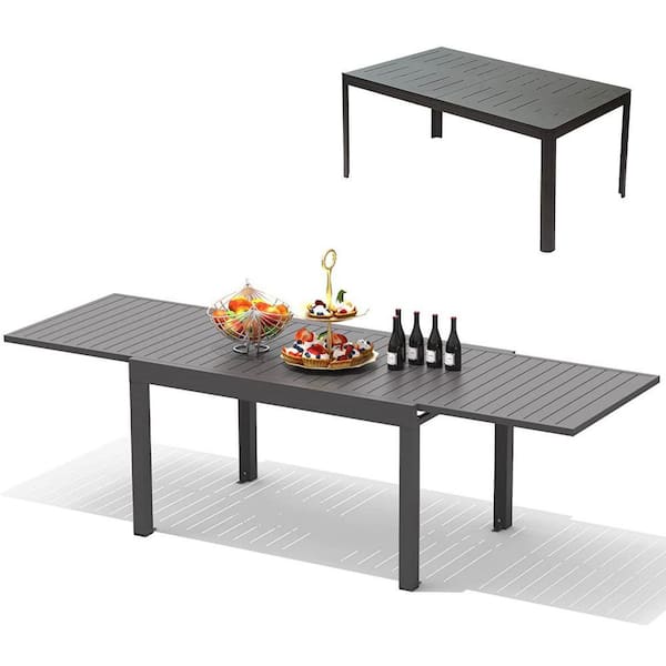 Black Rectangular Aluminium Outdoor Dining Table Large Extendable Patio Dining Table