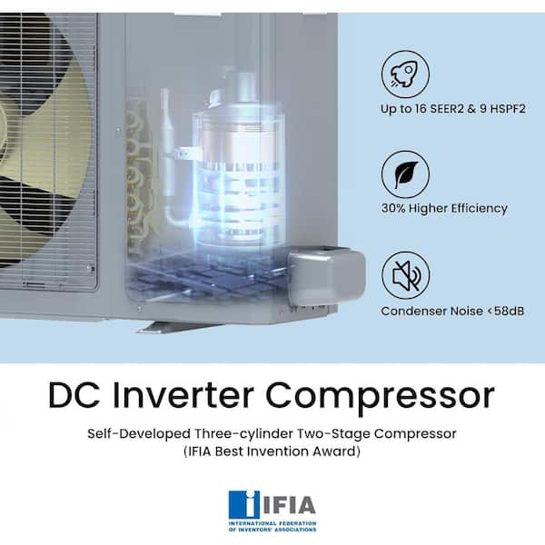 60,000 BTU Ducted Central AC Heat Pump System, 5-Tons, Originality 2-Stage Compressor, 35 ft. Copper Line Set 15.8 SEER2