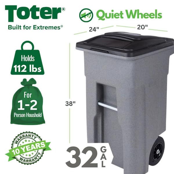 32 Gal. Graystone Trash Can with Quiet Wheels and Attached Lid