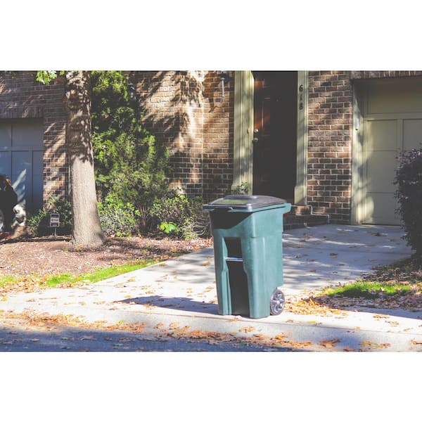 32 Gal. Greenstone Outdoor Trash Can with Wheels and Attached Lid