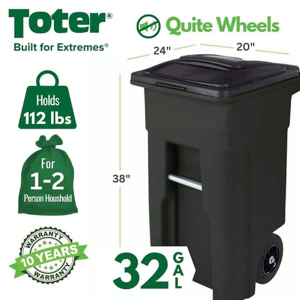 32 Gallon Greenstone Outdoor Trash Can/Garbage Can with Quiet Wheels and Attached Lid