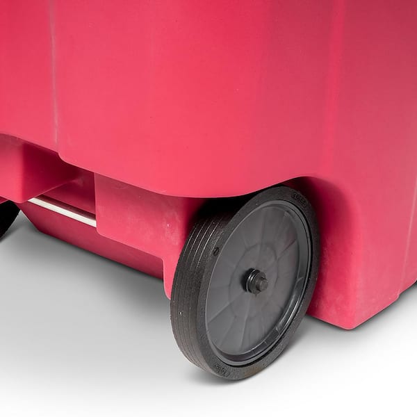 96 Gallon Red Hazardous Waste Trash Can/Garbage Can with Wheels and Lid Lock