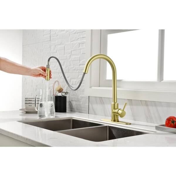 Touch Single Handle Pull Down Sprayer Kitchen Faucet in Gold