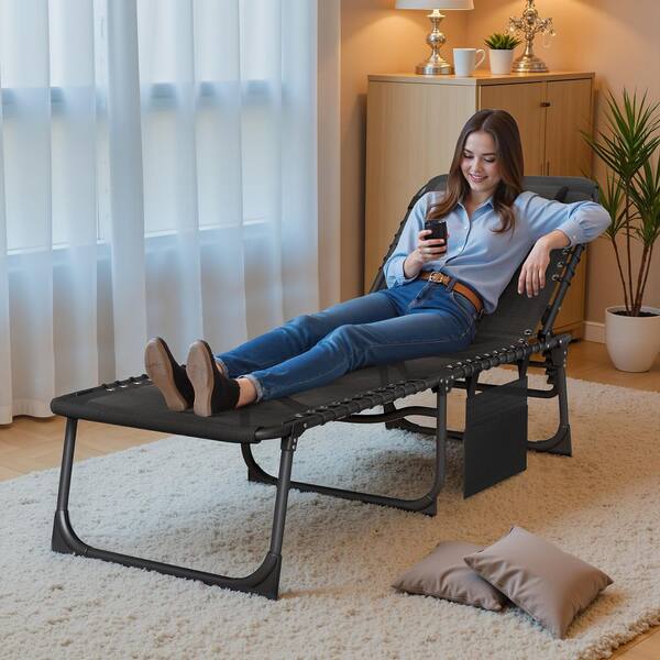 2-Pieces Metal Folding Outdoor Chaise Lounge with Face Hole, 5-Position Reclining Portable Patio Chair, Black