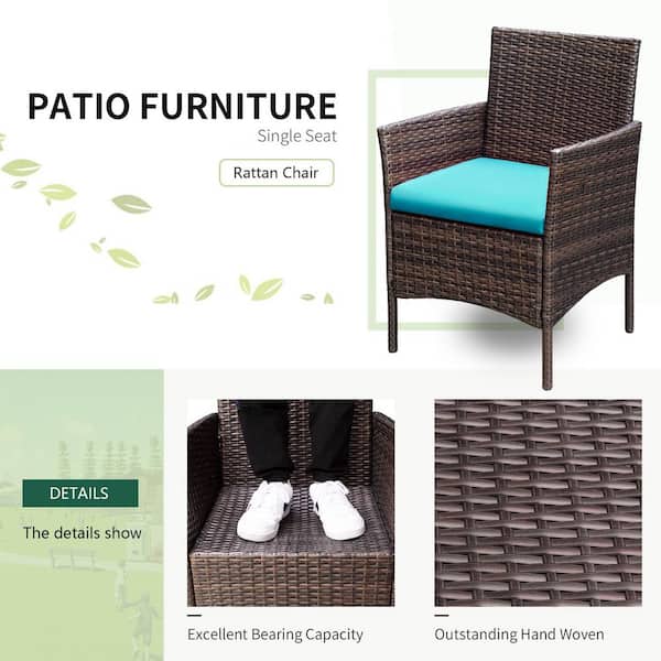 3-Pieces Wicker Blue Patio Furniture Set Outdoor Patio Conversation Set with Table with Blue Cushion