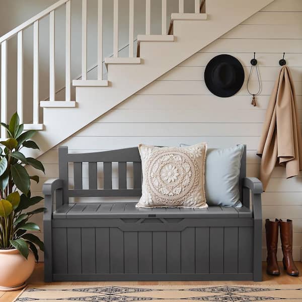 70 Gal. Gray Outdoor Storage Bench Resin Deck Box