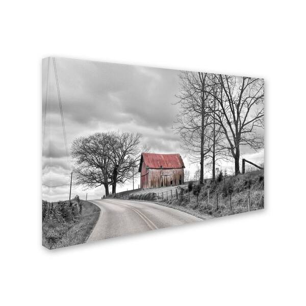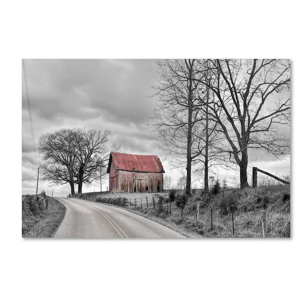 16 in. x 24 in. Springs Barn And Road Bw by Bob Rouse Hidden Frame Country Wall Art