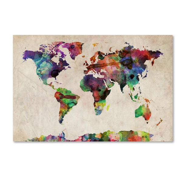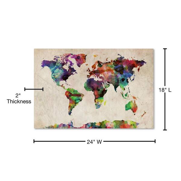18 in. x 24 in. Urban Watercolor World Map Canvas Art
