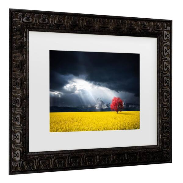 Bess Hamiti a Red Tree in the Canola Meadow Matted Framed Photography Wall Art 14.5 in. x 17.5 in.