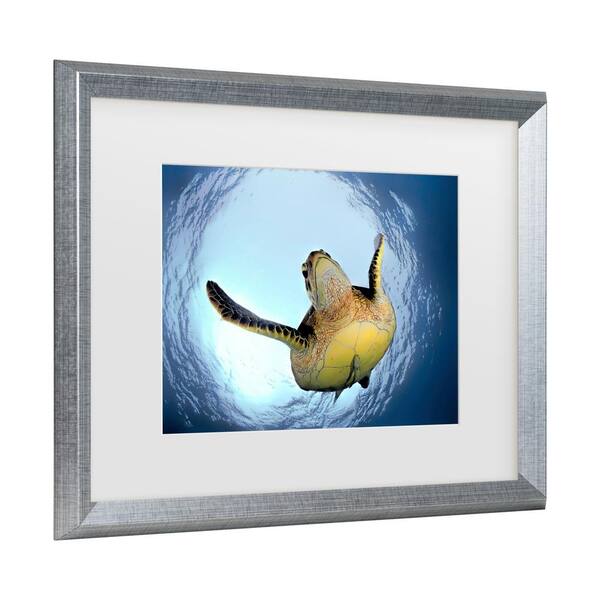 Henry Jager Green Turtle in Snells Window Matted Framed Photography Wall Art 14.5 in. x 17.5 in.
