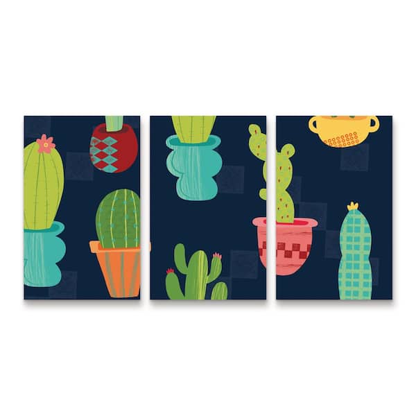 Holli Conger Southwest Cactus Pattern 3-Piece Panel Set Unframed Photography Wall Art 19 in. x 36 in.