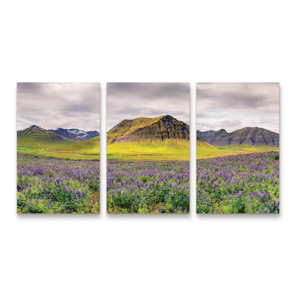 Michael Blanchette Photography Lupines and Mountains Panorama 3-Piece Panel Unframed Photography Wall Art 19 in. x 36 in