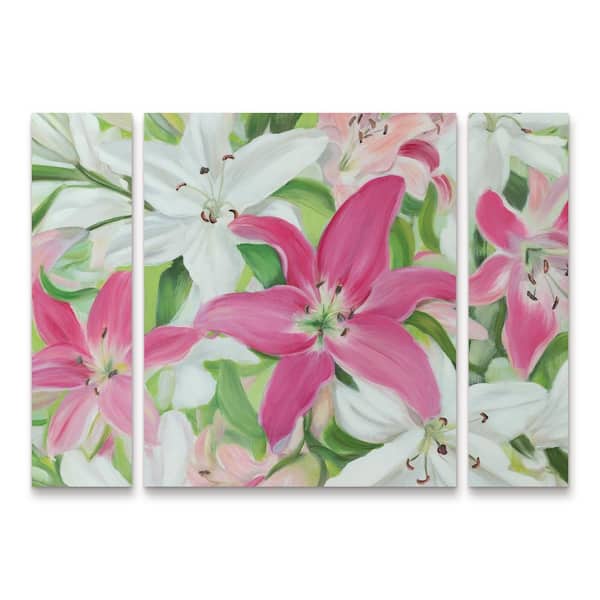 Sandra Lafrate Pink and White Lilies III 3-Piece Panel Set Unframed Photography Wall Art 30 in. x 41 in.