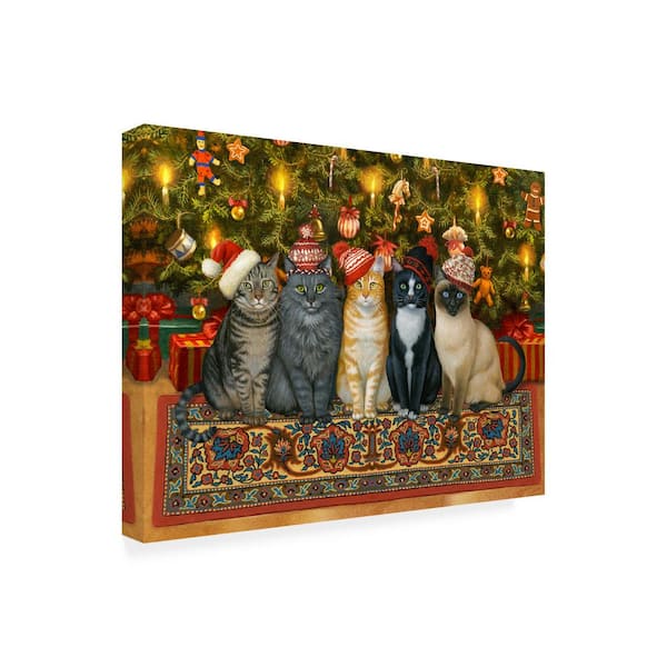 Unframed Home Ruth Sanderson 'Cats In Christmas Hats' Photography Wall Art 14 in. x 19 in.
