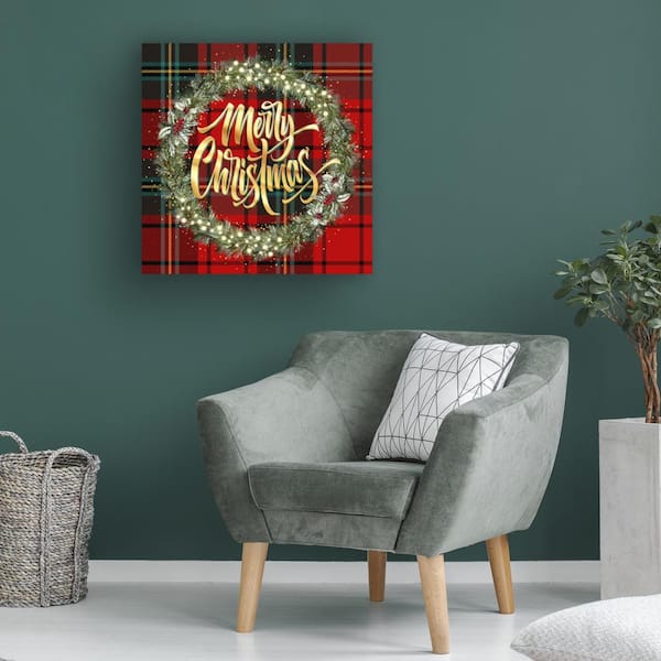 Unframed Home Tina Mitchell 'Merry Christmas Golden Wreath' Photography Wall Art 14 in. x 14 in.