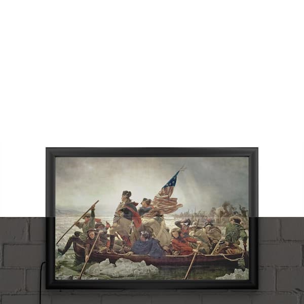 "'Washington Crossing Delaware River in 1776" by Emanuel Leutze Framed with LED Light People Wall Art 16 in. x 24 in.